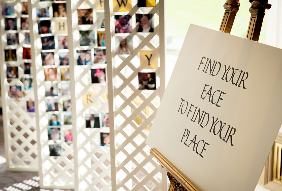 The 'find your face to find your place' table plan concept is a classic that helps engage your guests and keep things fun and relaxed.