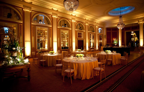 © 88 Events - Gold Chiavari chairs with cream Damask pads & linen & gold candelabras