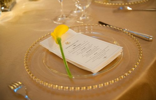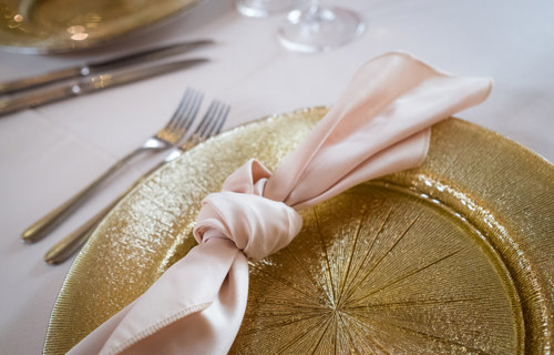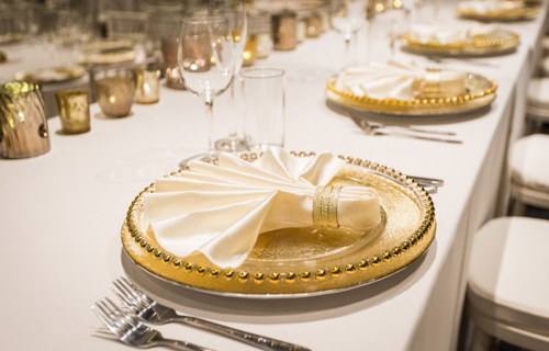 © 88 Events - Champagne Faux Silk linen with gold beaded charger plate