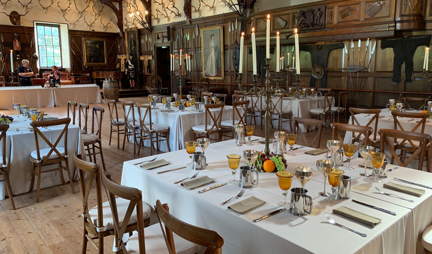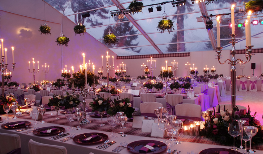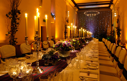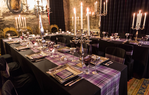 © 88 Events - Silver Candelabra 55cm with cream Essential & Lyndsay Tartan runner