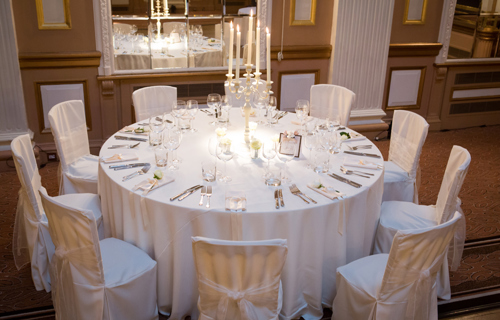 White Gloss Candelabra 77cm with white Essential linen & chair covers
