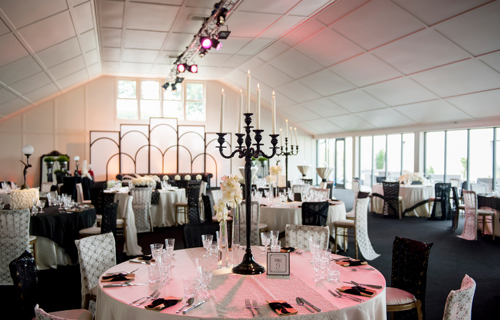 © 88 Events - Black Gloss Candelabra 106cm with cream Damask linen & chair covers