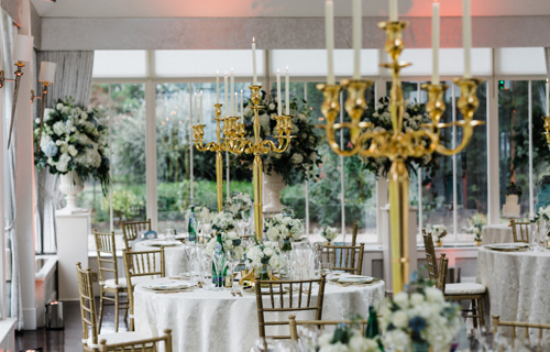 © @mclellanphotography - Gold Candelabra 120cm with cream Damask linen