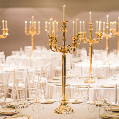 © 88 Events - Gold Candelabra 120cm with vanilla Milano linen