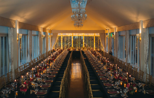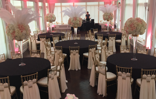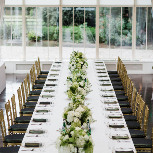 © 88 Events - Black Essential linen with gold Chiavari chairs and Santina weaves