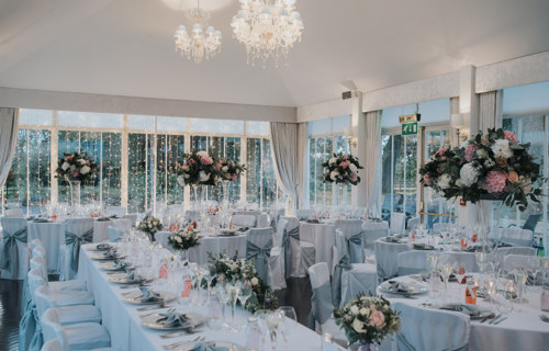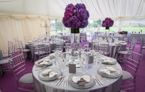 © Carlowrie Castle - Silver Milano linen with white Essential napkins, silver napkin ring & silver Beaded chargers
