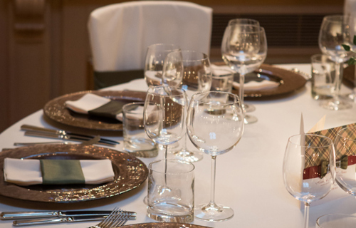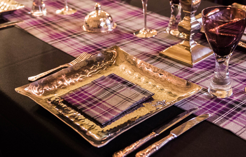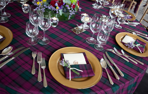 © 88 Events - Gold charger plate with Bruce Tartan linen