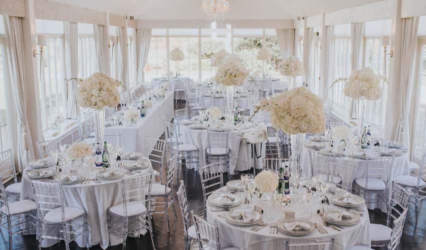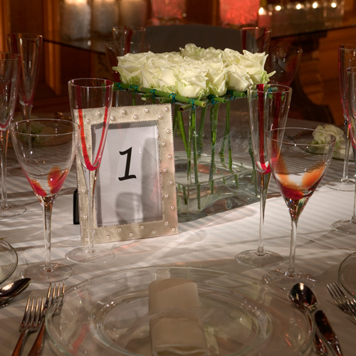 © 88 Events - Ivory Chic napkins, white Essential linen & gold trim charger plates