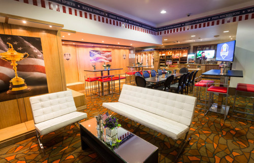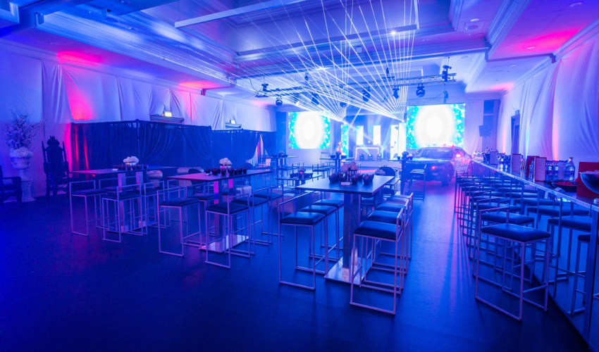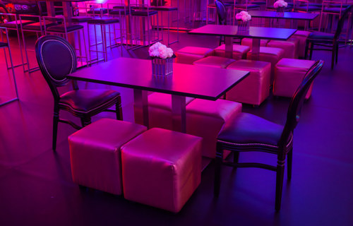 © 88 Events - Black bar table, black French chairs & red cubed seats