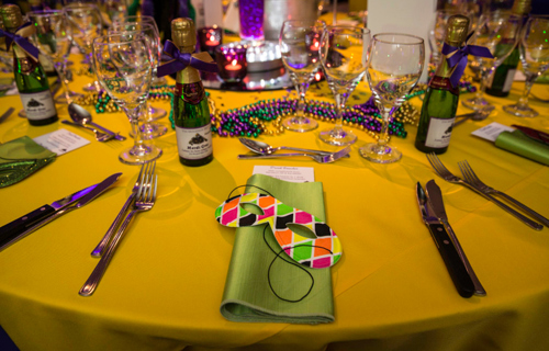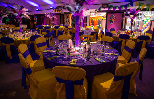 © Prime Events - Purple Essential linen, yellow Essential napkin & chair covers