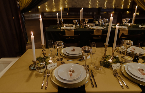 © @wearegloam - Gold Essential linen, gold Starburst charger & pewter goblet