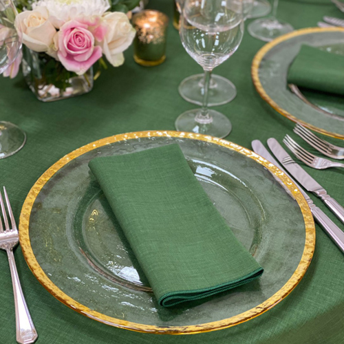 Evergreen Gelato linen & napkin & gold trim charger plate