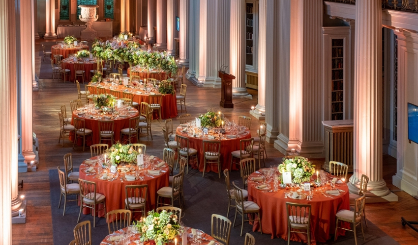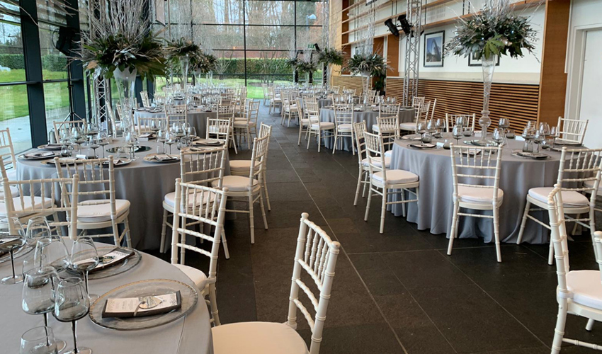 © Royal Bank of Scotland - Grigio Gelato linen, silver trim charger, smoke grey glasses & ivory Chiavari chairs