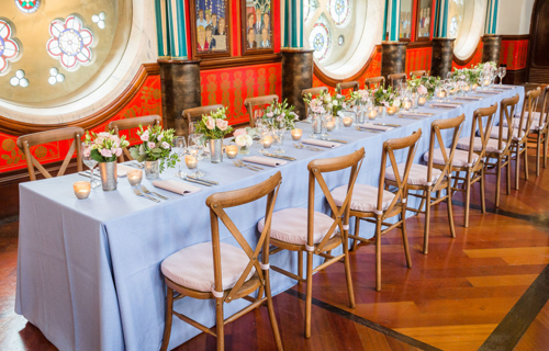 © 88 Events - Violet cream Gelato linen with Crossback chairs & pink almond Gelato pads