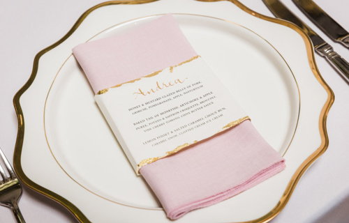 © 88 Events - Peony Gelato napkin & gold Porcelain charger plate