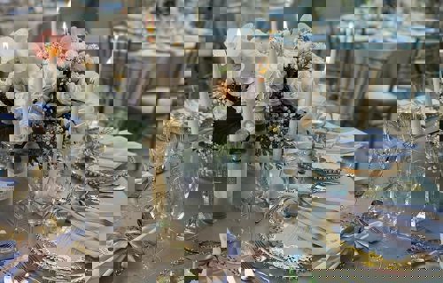 Sand Milano linen with silver Beaded chargers