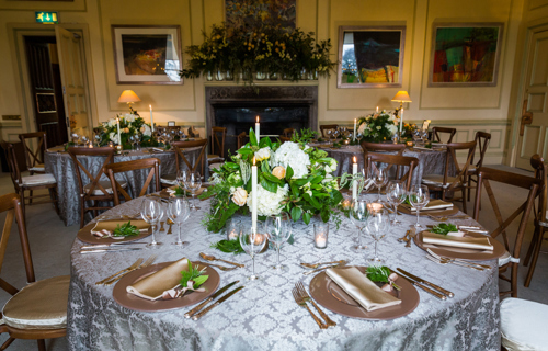© @karldoublephotos - Sand Milano linen with silver Beaded chargers