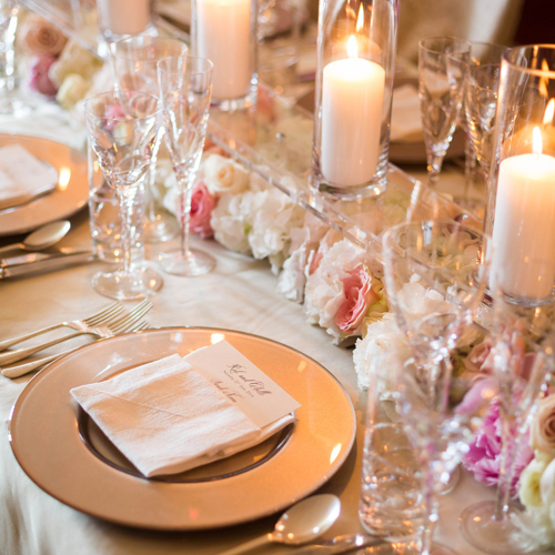 © mack_photo - Latte St. Tropez linen, silver Beaded chargers & gold Chiavari chairs with cream pads