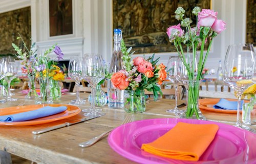 Bright coloured charger plates & Essential napkins