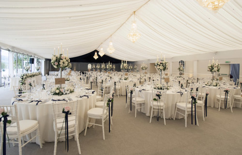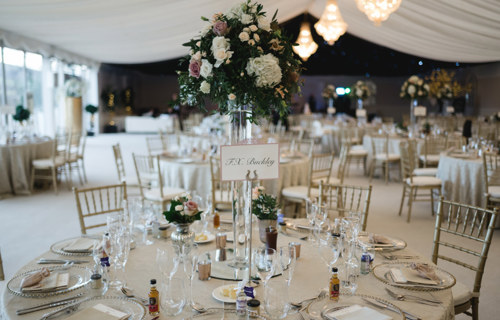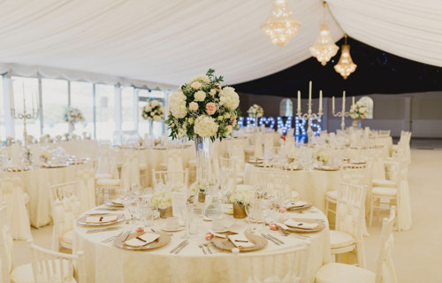 © 88 Events - Cornish cream Damask linen & pads on ivory Chiavari chairs with Santina weaves & latte chargers