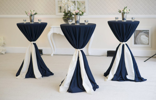 © 88 Events - Navy Essential linen with white Taffeta ties