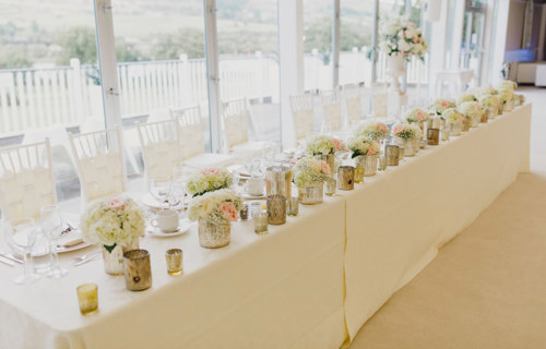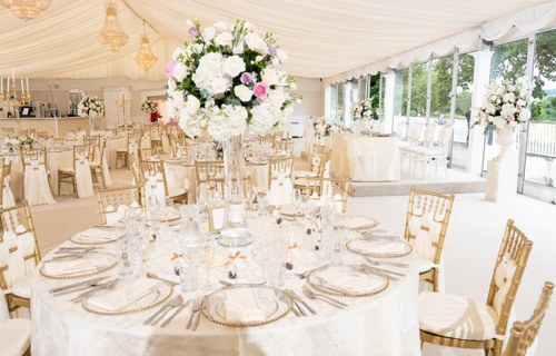Cornish cream Damask linen & pads on ivory Chiavari chairs with Santina weaves & latte chargers