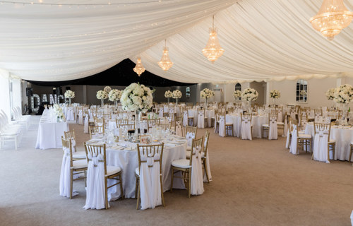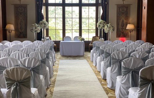 © 88 Events - White Essential chair covers with dove grey Taffeta ties