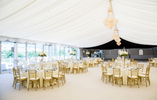 Vanilla Milano linen with gold Chiavari chairs & ivory Santina weaves