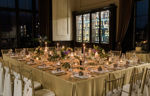 © Lindsey Mack Photography - Latte St. Tropez linen, sand Milano napkins, gold beaded chargers & gold Chiavari chairs
