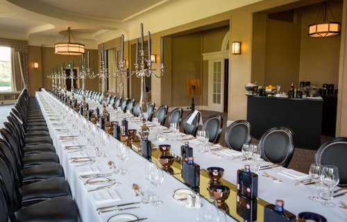 © Haig Club - White Essential linen, black French chairs & silver square base candelabras