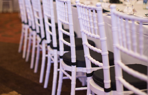 © 88 Events - Ivory Chiavari chairs with noir Taffeta pads