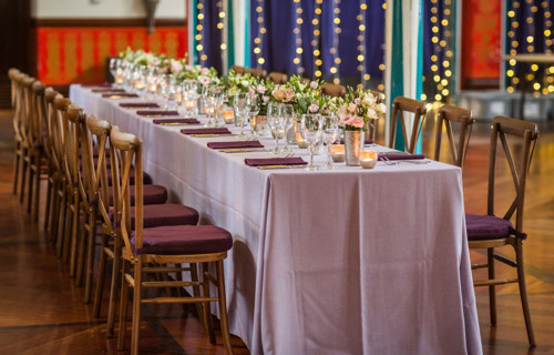 © 88 Events - Violet cream Gelato linen, crema Gelato napkins & Crossback chairs