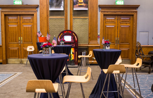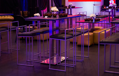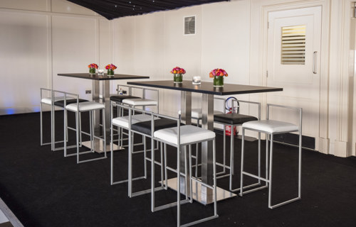 © 88 Events - Black contemporary hi bar tables & contemporary stools with black pads