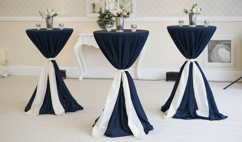 © 88 Events - Navy Essential linen with cream Taffeta ties