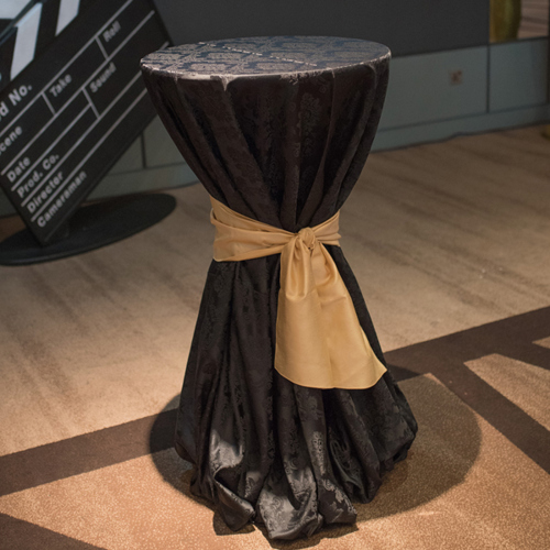 © 88 Events - Noir Damask linen with champagne Faux Silk tie