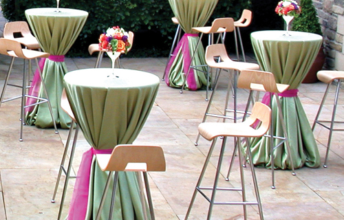 © 88 Events - Apple Faux Silk linen with fucshia Organza ties & beech bar stools