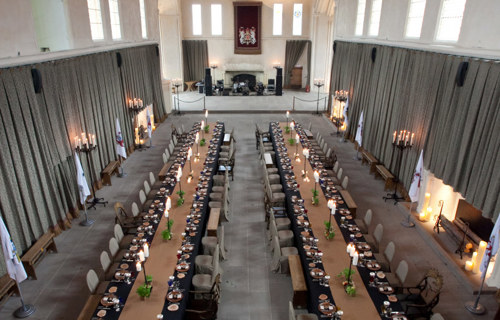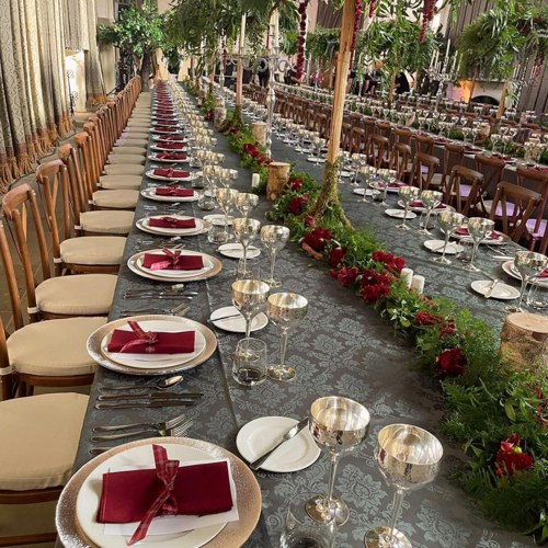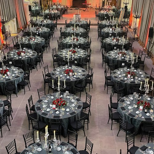 © Benugo - Black Chiavaris with Slate grey Damask linen & silver candelabras