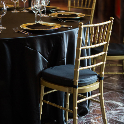 Nero Verona linen with gold Chiavari chairs with black Taffeta pads