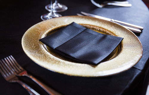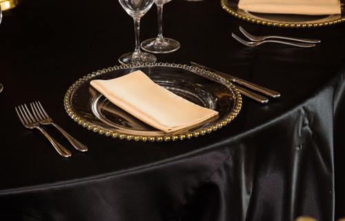 © 88 Events - Nero Verona linen with Golden Verona napkin & gold beaded charger plate