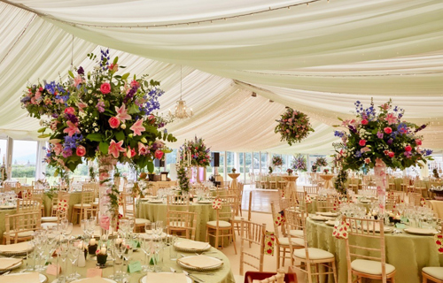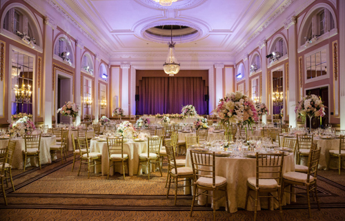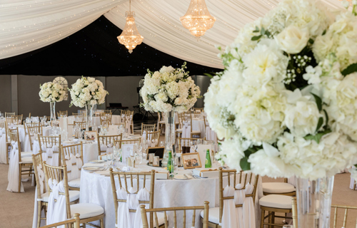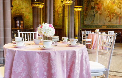 © Heritage Portfolio - Misty rose Damask linen & ivory Chiavari chairs