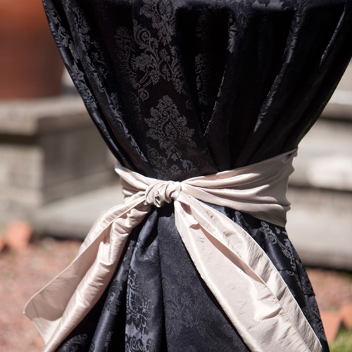 © 88 Events - Noir Damask linen with latte Taffeta tie